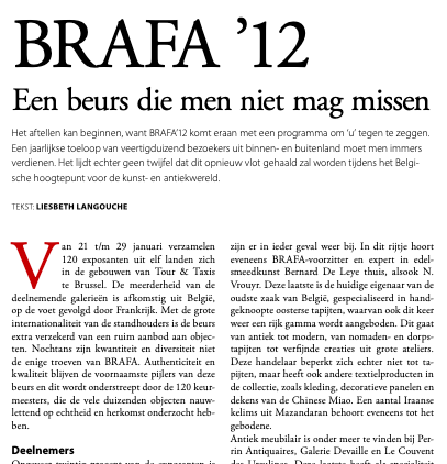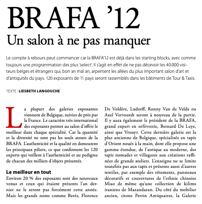 La BRAFA hausse le ton.Bruxelles ouvre le bal des foires d'antiquaires avec ses plus beaux atours. Read the articleor download